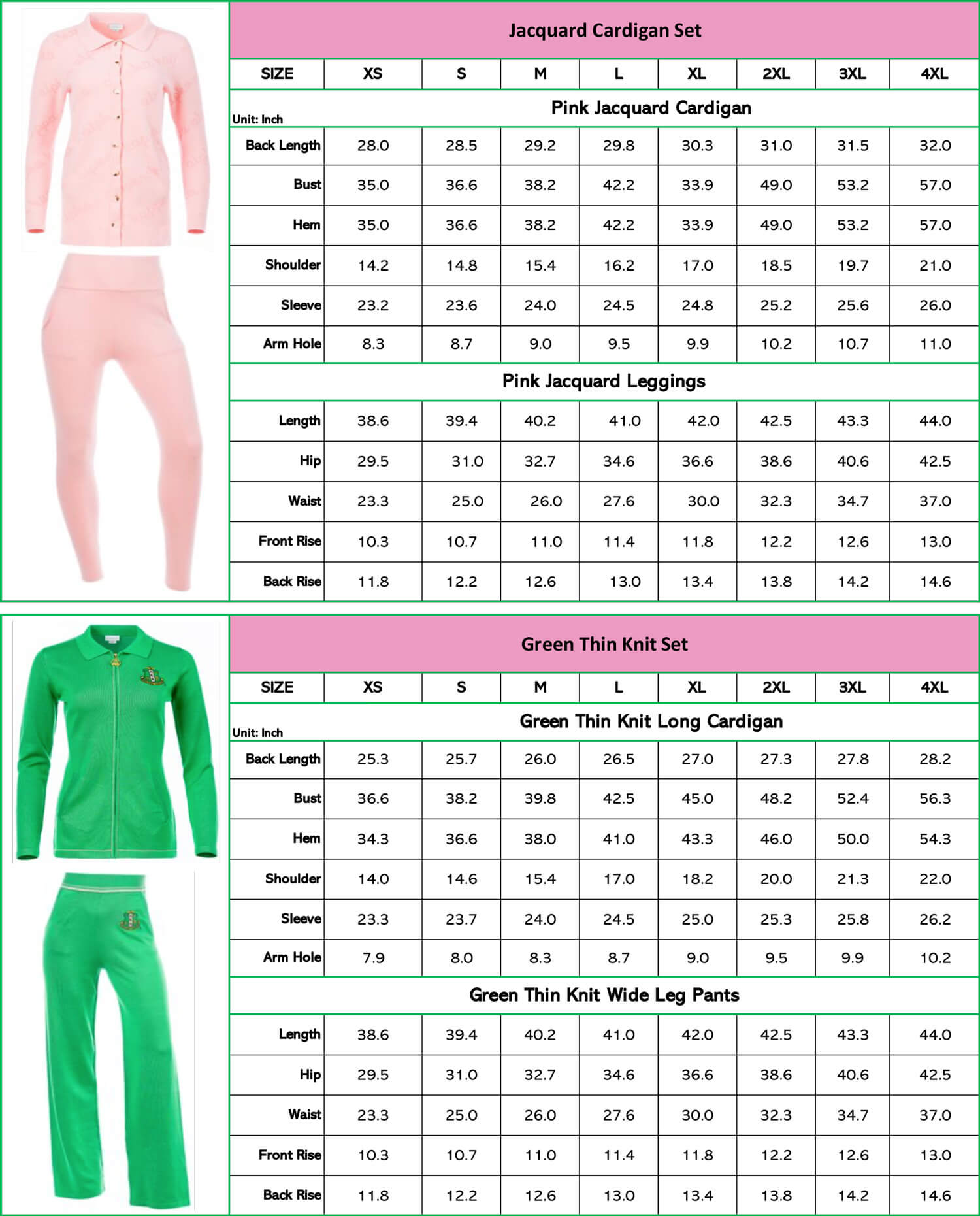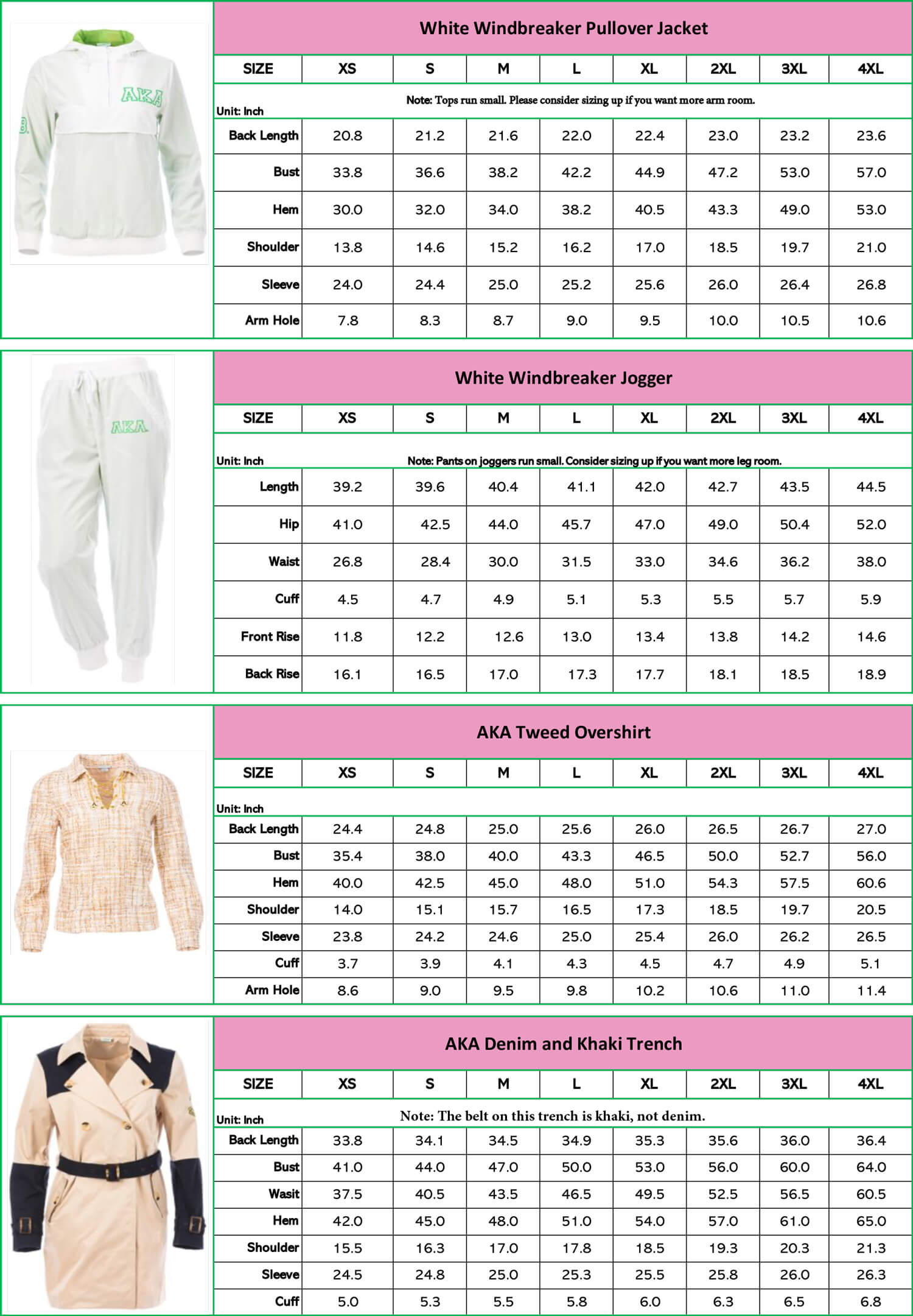 Winter 2021 Collection Size Chart